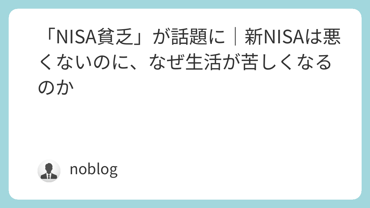 「NISA貧乏」が話題に|新NISAは悪くないのに、なぜ生活が苦しくなるのか